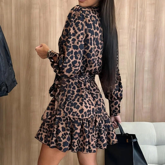 Nuccia Ori™ Abito avvolgente leopardato con scollo a V e cintura in vita