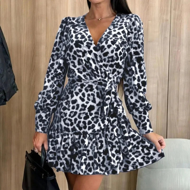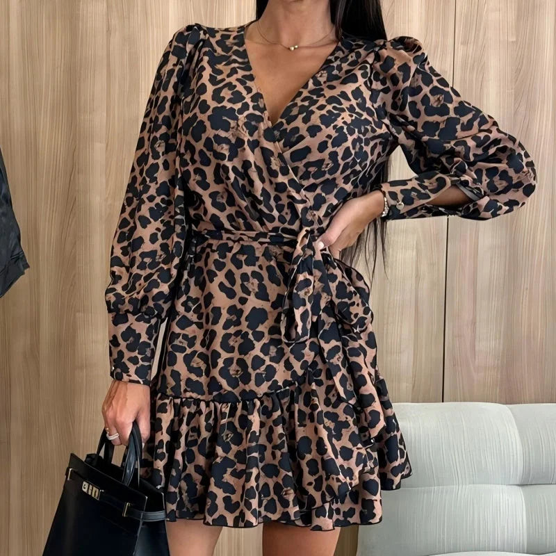 Attira gli sguardi a ogni passo con questo audace abito leopardato che valorizza la silhouette, progettato per muoversi insieme a te. Che tu stia andando a una festa o godendoti il sole, questo modello unisce stile selvaggio e comfort per tutto il giorno. Il scollo a V incrociato e la cintura in vita creano una silhouette che esalta la tua bellezza naturale, garantendo al contempo comfort e sicurezza. È la combinazione perfetta di stile chic e leggerezza casual – non vorrai più toglierlo.