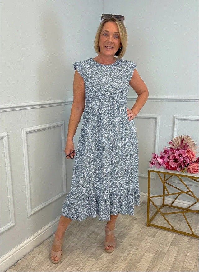 Questo vestito è esattamente ciò che mancava nel tuo guardaroba. Con il suo incantevole motivo floreale, la vita sagomata e le morbide maniche con volant, questo modello ti avvolge con un fascino femminile dalla testa ai piedi. Realizzato in un tessuto leggero e arioso che si muove con grazia a ogni passo, è comodo e delizioso allo stesso tempo.