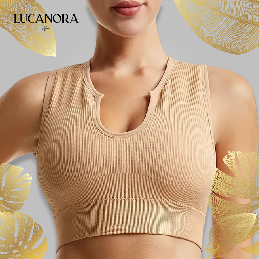 ✔ Modella senza reggiseno: Questo crop top ha un sostegno integrato, così puoi dire addio al reggiseno. Solleva delicatamente il seno e modella la figura – senza ferretti, senza compressione, senza fastidi.
